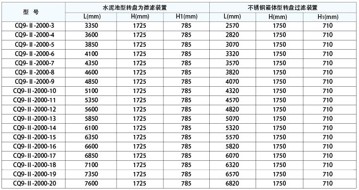 CQ9-Ⅱ半浸式轉盤微過濾裝置技術參數(僅供參考)